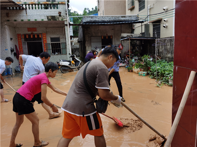 另一邊廂,自1日凌晨3時許,永一村的10余名退役軍人就對轄區(qū)內22個生產隊、工廠、市場附近開展巡查,并對周邊居民住宅、永一市場、茅灣橋底附近進行抽水,拉設警戒線;裕洲村10余名退役軍人在村干部的帶領下,從凌晨3時就開始對轄區(qū)內蜘洲山、生產隊、代耕戶、工廠、市場附近一帶巡查,勸導20余名群眾安全轉移,幫助30余戶村民住宅抽水排水,調用2臺大型鉤機清理路面上的淤泥,修復斷裂的道路,確保了道路的及時暢通。坦洲鎮(zhèn)退役軍人紅旗志愿服務隊隊員、裕洲村退役軍人梁容漢說:“雖然我已退役多年,但軍人骨子里的那份家國情懷從未改變,不管什么時候,只要黨和人民有需要,我們義不容辭!”
