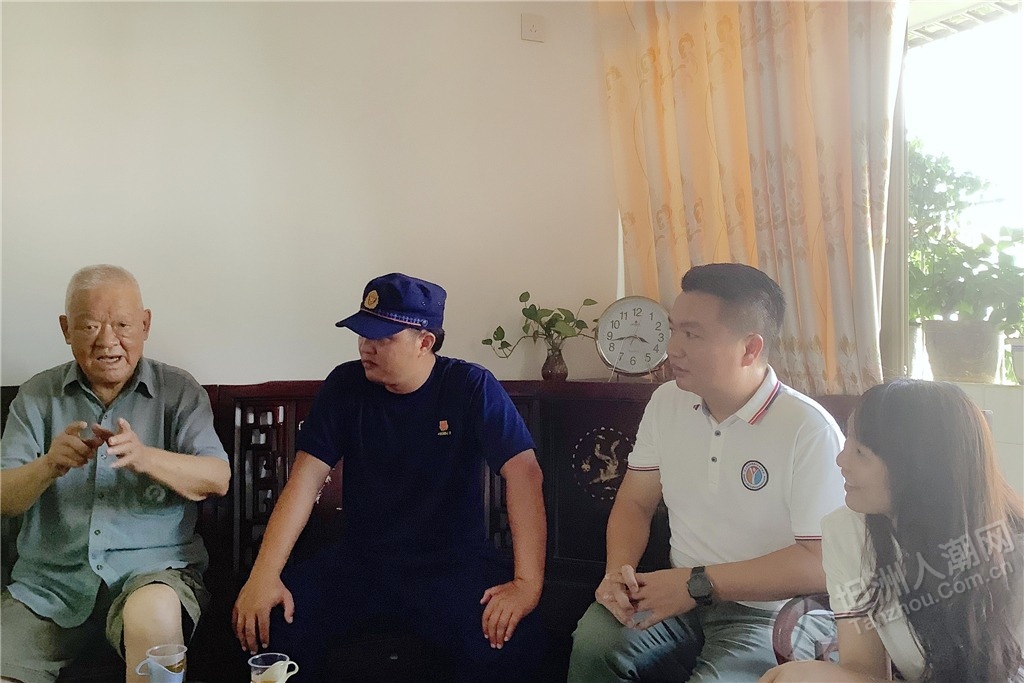 隨后,慰問組還邀請參戰(zhàn)老兵鄭金洪走進中山市消防救援支隊坦洲大隊講述革命故事,給與會黨員干部和部分基干民兵送上了一堂生動、鮮活的紅色教育黨課,讓全體人員感受參戰(zhàn)老兵的精神洗禮。“在一次部隊作戰(zhàn)時,我和另一名貴州籍的戰(zhàn)友去攻打一個火力點,我們一起在山腳的一塊石頭處掩護,但根據(jù)我以往的作戰(zhàn)經(jīng)驗,我覺得這里不安全,于是趕緊對他說不要待在那塊石頭那,也不要站立,趕緊滾到下面的公路去;好在他聽從我的命令后,迅速地做出反應。當我們到達安全地方時,長舒一口氣,一直聽到有子彈嗖嗖嗖地從那塊石頭附近穿梭而過;而那位戰(zhàn)友感慨地跟我說‘班長,好在你迅速做出反應,不然我在那不是受傷就是死了?!编嵔鸷橐杂H身經(jīng)歷聲情并茂地向大家講述了當年戰(zhàn)火紛飛的戰(zhàn)斗經(jīng)歷。 ▲慰問組一行聆聽烈士遺屬陳北根講述他父親生前與敵斗爭的英雄故事。