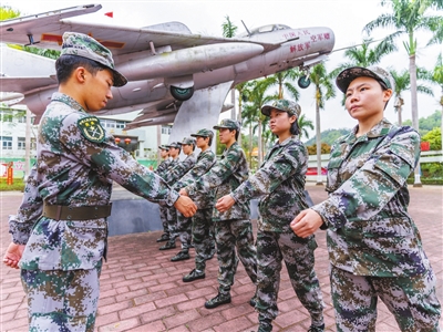 “向右看齊!向前看!現(xiàn)在教你們軍人隊(duì)列動(dòng)作中的脫帽戴帽要領(lǐng)……”3月21日下午,在中山市國(guó)防教育基地訓(xùn)練場(chǎng)上,一支七人訓(xùn)練小隊(duì)顯得格外特別,她們是今年上半年應(yīng)征入伍的中山女兵:梁晶、馮妙瑩、藍(lán)宇瑩、陳琬琪、溫黎嘉茵、劉燕彤、蘇汶詩(shī)。 她們都是00后女大學(xué)生,身著迷彩服,精神抖擻地在教官羅偉進(jìn)的帶領(lǐng)下有序而緊張地開(kāi)展隊(duì)列訓(xùn)練。“七朵金花”青澀稚嫩的臉上寫滿了對(duì)軍旅生活的向往和期待。她們將通過(guò)幾天的役前教育訓(xùn)練,邁出軍旅生活第一步。 ■五次報(bào)名應(yīng)征終圓夢(mèng) 七朵金花中,沙溪鎮(zhèn)占據(jù)兩席名額,她們分別是藍(lán)宇瑩和劉燕彤。沙溪鎮(zhèn)武裝部工作人員劉偉立說(shuō):“從歷年來(lái)看,這次是我們鎮(zhèn)出女兵人數(shù)最多的一次。其中,龍聚環(huán)村民小組更是出兵大戶,幾乎每年都有男女兵從這里出。” 身高1.7米的劉燕彤就來(lái)自沙溪鎮(zhèn)樂(lè)群村(龍聚環(huán)村民小組),就讀于廣東海洋大學(xué),是一名大二學(xué)生?!拔矣洃浿忻看未謇镉腥水?dāng)兵入伍,都會(huì)舉行隆重的送兵儀式,整個(gè)村子鑼鼓喧天鞭炮齊鳴,還有舞獅表演助陣,好熱鬧。很小的時(shí)候我就覺(jué)得當(dāng)兵很威風(fēng)很光榮,在我心里也就埋下了要當(dāng)兵的種子?!眲⒀嗤f(shuō):“我對(duì)部隊(duì)生活充滿了期待,進(jìn)入部隊(duì)后我希望自己能考上軍校留在部隊(duì)長(zhǎng)期發(fā)展?!?/p> 藍(lán)宇瑩來(lái)自沙溪鎮(zhèn)匯源社區(qū),就讀于廣東技術(shù)師范大學(xué),是一名大三學(xué)生。她曾在網(wǎng)上報(bào)名應(yīng)征了5次,可見(jiàn)其參軍入伍決心之大?!拔覐男【秃艹绨蒈娙?,從小學(xué)一直到大學(xué)都是學(xué)校國(guó)旗護(hù)衛(wèi)隊(duì)的隊(duì)員?!彼{(lán)宇瑩表示,幸運(yùn)的是今年3月份,自己終于圓夢(mèng)軍營(yíng)即將前往某戰(zhàn)區(qū)海軍服役。 藍(lán)宇瑩的母親錢梅香表示:“我非常支持女兒的決定,感覺(jué)入伍對(duì)女生來(lái)說(shuō)是一種很好的鍛煉。如果有機(jī)會(huì),我還想讓小兒子上大學(xué)后也進(jìn)入部隊(duì)參軍報(bào)國(guó),向姐姐學(xué)習(xí)?!?/p> ■對(duì)軍營(yíng)生活充滿期待 七朵金花中,來(lái)自南朗街道下沙村的馮妙瑩就讀于廣東醫(yī)科大學(xué),今年6月份大學(xué)畢業(yè)?!拔覀冏黾议L(zhǎng)的就是希望她入伍后好好干,加油努力?!瘪T妙瑩的父親不善言辭,非常支持女兒的從軍決定,“我年輕時(shí)也想當(dāng)兵,但身體條件不合格,錯(cuò)失了機(jī)會(huì)?!?/p> “我大一就加入了學(xué)校國(guó)旗護(hù)衛(wèi)隊(duì),通過(guò)日復(fù)一日的隊(duì)列訓(xùn)練,開(kāi)始向往激情如火的軍營(yíng)生活。”馮妙瑩告訴記者,“對(duì)即將到來(lái)的部隊(duì)生活,既期待又有點(diǎn)擔(dān)心。擔(dān)心去到一個(gè)陌生的環(huán)境會(huì)不適應(yīng),但既然選擇了這條路,我一定會(huì)克服困難,堅(jiān)持下去,爭(zhēng)取留在部隊(duì)發(fā)展,早日成為一名優(yōu)秀軍人?!?/p> 來(lái)自民眾街道的梁晶就讀于南華大學(xué),今年6月即將大學(xué)畢業(yè)。她剛進(jìn)入大一就提交了入黨申請(qǐng)書,2022年正式成為一名共產(chǎn)黨員。梁晶說(shuō):“2021年河南特大暴雨期間,通過(guò)新聞媒體看到中國(guó)軍人逆流而上,連夜出征轉(zhuǎn)移群眾的場(chǎng)景讓我深受感動(dòng)。那時(shí)起,我就萌生了參軍的想法?!毙疫\(yùn)的是,她今年終于圓夢(mèng)軍營(yíng),她表示:“面對(duì)未知的軍營(yíng)生活,我已經(jīng)作好了心理準(zhǔn)備。進(jìn)入部隊(duì)后,我一定會(huì)好好適應(yīng),有信心能在部隊(duì)干好?!?/p> 臨近傍晚,一天的訓(xùn)練就要結(jié)束了,中山市國(guó)防教育基地門口上方一條寫著“保家衛(wèi)國(guó)終不悔,綠色軍營(yíng)獻(xiàn)青春”的紅色橫幅迎風(fēng)招展,不遠(yuǎn)處的軍營(yíng)生活正等著中山這“七朵金花”的到來(lái),她們也在憧憬著…… 記者 張倩 ◆編輯:龍慧◆二審:鄭沛鋒◆三審:周亞平 |