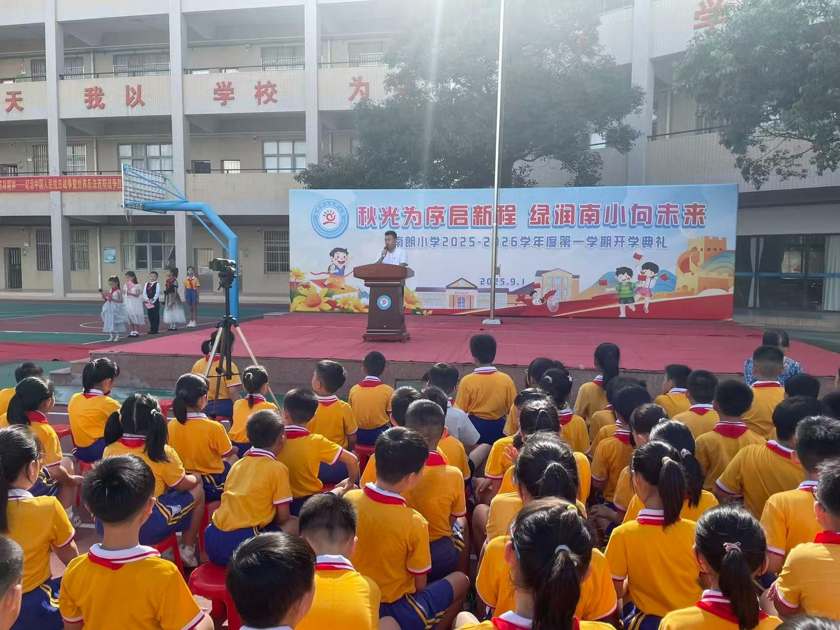 9月1日,中山南朗街道南朗小學(xué)舉行秋季學(xué)期開學(xué)典禮。開學(xué)典禮以紀(jì)念中國人民抗日戰(zhàn)爭暨世界反法西斯戰(zhàn)爭勝利80周年為主題,把愛國主義教育作為新學(xué)期的“開學(xué)第一課”,帶領(lǐng)同學(xué)們回望烽火歲月,弘揚(yáng)偉大抗戰(zhàn)精神。 南朗街道南朗小學(xué)黨支部書記、校長杜少君為同學(xué)們講述了可歌可泣的抗戰(zhàn)故事。簡文祥 攝開學(xué)典禮上,南朗街道南朗小學(xué)黨支部書記、校長杜少君以《銘記偉大勝利,傳承抗戰(zhàn)精神——紀(jì)念中國人民抗日戰(zhàn)爭暨世界反法西斯戰(zhàn)爭勝利80周年》為題,講述了可歌可泣的抗戰(zhàn)故事,為全體師生上了一堂生動(dòng)的思政第一課。 92歲的老校長程民興受邀來到學(xué)校,他以親歷者的身份為同學(xué)們講述校園經(jīng)歷的抗戰(zhàn)故事。簡文祥 攝南朗小學(xué)的前身是安定學(xué)校,也是1943年南朗安定戰(zhàn)斗的核心遺址。活動(dòng)當(dāng)日,92歲的老校長程民興受邀來到學(xué)校,他以親歷者的身份為同學(xué)們講述校園經(jīng)歷的抗戰(zhàn)故事,讓過去的歷史多了份可觸的溫度?!叭毡撅w機(jī)轟炸安定學(xué)校時(shí),瓦片碎裂的聲響至今仍在耳畔回響,那次轟炸,我險(xiǎn)些沒能活下來。”他告訴同學(xué)們,日寇占據(jù)安定學(xué)校后,把兩層教學(xué)樓改造成堡壘,墻外布滿帶刺的鐵絲網(wǎng),槍口日夜對(duì)著村口;那時(shí)他就躲在閣樓里,親眼看見二樓窗口常年架著機(jī)槍,夜里探照燈掃過田野時(shí),全村人都屏息凝神,不敢發(fā)出半點(diǎn)聲響。 如今,程民興的兒女們?cè)趪馍睿⒆觽兿胍铀鰢?,但他卻執(zhí)意留在國內(nèi)。他告訴同學(xué)們:“你們看,咱們現(xiàn)在的日子多好啊——吃的、用的樣樣齊全,出門不管是坐車還是騎車,去哪兒都特別方便;再瞧瞧你們的校園,環(huán)境優(yōu)美,設(shè)備先進(jìn)。同學(xué)們一定要珍惜這么好的學(xué)習(xí)環(huán)境,認(rèn)真讀書,增長本領(lǐng),祖國的建設(shè)以后就要靠你們了?!?/p> 杜少君帶領(lǐng)孩子們到南朗小學(xué)操場(chǎng)保留的帶彈孔的殘墻,講述抗戰(zhàn)往事。簡文祥 攝 活動(dòng)最后,杜少君特意帶領(lǐng)孩子們到南朗小學(xué)操場(chǎng)保留的帶彈孔的殘墻,觸摸那些深淺不一的彈痕。他指向殘墻旁生長的綠植說道:“這片曾被戰(zhàn)火灼燒的土地,如今已長出繁榮的新綠。烈士們用生命守護(hù)的家園,正在一代代人的手中變得更好?!庇|摸彈痕的那一刻,同學(xué)們仿佛在與歷史對(duì)話:傳承偉大抗戰(zhàn)精神,不是一句口號(hào),而是要接過前輩的接力棒,在新時(shí)代為家鄉(xiāng)、為祖國奮斗。 校園操場(chǎng)、紅色地標(biāo)、親歷者、戰(zhàn)斗遺址串聯(lián)起一堂行走的思政課。杜少君說:“讓孩子們?cè)跉v史現(xiàn)場(chǎng)觸摸過去,才能真正理解‘銘記’的意義。偉大抗戰(zhàn)精神的傳承,就藏在每一次駐足、每一次傾聽、每一次思考里?!?/p> 通訊員:于銳 簡文祥 ◆編輯:吳玉珍◆二審:鄭沛鋒◆三審:周亞平 文盾校對(duì)——用科技,守文字 |