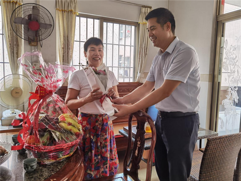 ▲南頭鎮(zhèn)退役軍人服務(wù)中心走訪慰問邊防海防現(xiàn)役軍人母親。 每到一戶,南頭鎮(zhèn)退役軍人服務(wù)中心主任黃國全都為“兵媽媽”獻(xiàn)上鮮花和果籃,并了解邊防海防現(xiàn)役軍人在部隊(duì)的服役情況,以及家屬身體狀況、生活、工作等情況,對(duì)她們默默支持孩子為國防建設(shè)作貢獻(xiàn)致以崇高的敬意。 “謝謝你們今天專程來看望我,我感到黨和國家對(duì)軍人軍屬越來越重視,作為邊防軍人家屬尤其感到驕傲和自豪!我們將一如既往地支持他在邊防站好崗、放好哨,為國防出力!”邊防官兵何財(cái)華媽媽說道。 |