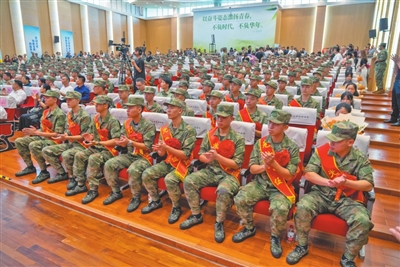 身著迷彩服,佩戴光榮花,一張張青春臉龐上滿是憧憬之情。金秋九月,中山又一批有志青年背上行囊,意氣風(fēng)發(fā)奔赴軍營。 今年下半年,全市共有3000多名適齡青年報名應(yīng)征,經(jīng)過體檢、政治考核、役前教育等層層選拔,共征集了300多名男兵,在讀大學(xué)生征集比例、大學(xué)畢業(yè)生征集比例再創(chuàng)歷史新高,圓滿完成了上級賦予的任務(wù)。 “希望你們不管在何處服役,是哪個兵種,都銘記父老鄉(xiāng)親的殷殷囑托,在部隊大力弘揚中山‘敢想敢闖、敢為人先’的精神,展示出‘中山兵’的良好精神風(fēng)貌,沖鋒在前、勇?lián)笕巍^斗奉獻,努力為中山增光添彩。祝新戰(zhàn)友們一路順風(fēng),刻苦訓(xùn)練,能打勝仗,捷報頻傳!”在出席中山2023年下半年新兵歡送儀式時,中山市征兵工作領(lǐng)導(dǎo)小組副組長、中山軍分區(qū)大校司令員李云濤鄭重地說。 來自三鄉(xiāng)鎮(zhèn)的新兵代表馮林研究生畢業(yè)于青島農(nóng)業(yè)大學(xué),他鄭重承諾:“到部隊后我們一定牢記使命,安心服役、刻苦訓(xùn)練、嚴(yán)守紀(jì)律、積極進取,為祖國和平安寧扛好槍、站好崗,不辜負國家和家鄉(xiāng)人民的期望!” 敲鑼打鼓,列隊歡迎。一場歡送儀式,就是一次生動的國防教育。歡送儀式上,除了以東鳳鎮(zhèn)新兵張學(xué)培家庭“三代從軍”事跡為背景創(chuàng)作的原創(chuàng)詩歌朗誦《致敬夢想的接力》、男聲四重唱《強軍戰(zhàn)歌》等文藝表演,新兵還展示了軍體拳,動作干凈利落整齊,儼然已有軍人的模樣。現(xiàn)場,省級非物質(zhì)文化遺產(chǎn)起灣金龍展演也來助陣,只見金龍起舞、鑼鼓喧天,熱鬧非凡。 兒行千里母擔(dān)憂,歡送現(xiàn)場,不少家長熱淚盈眶,拿起手機記錄著孩子入伍的珍貴畫面,送兵車緩緩啟動,家長們的目光卻始終不肯轉(zhuǎn)移。一路跟隨,久久不肯離去…… 登上大巴車,新兵們揮一揮手:“再見,中山!軍營,我來啦!” 記者 黃藝杰 張倩 通訊員 黃嘉裕 圖編 文智誠 ◆編輯:龍慧◆二審:蘇鵬蘊◆三審:周亞平 |