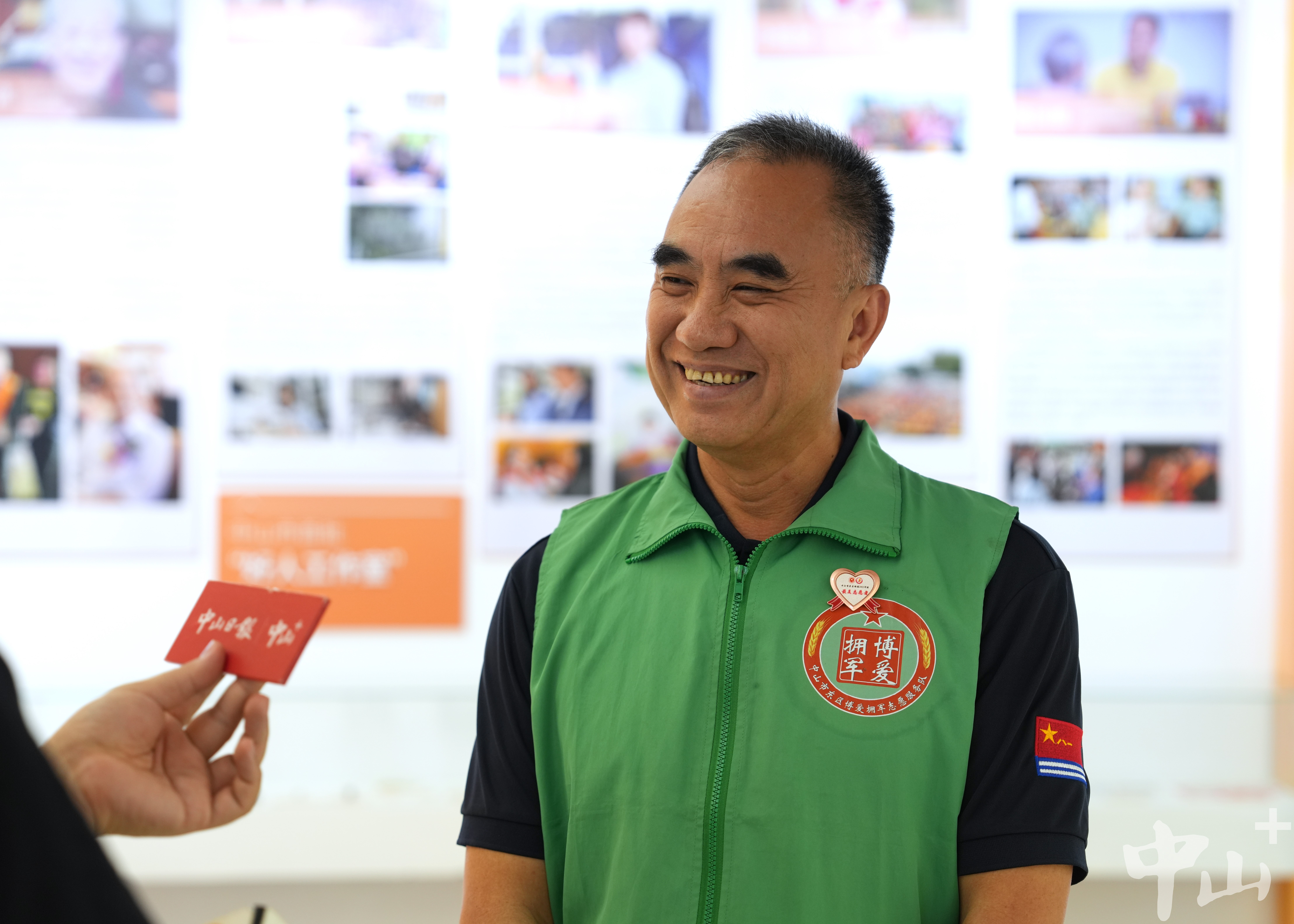 作為一名退伍軍人,李克有很多曾一起在戰(zhàn)場上出生入死的戰(zhàn)友,其中不乏已經(jīng)為國捐軀的烈士。自2007年起,他便自發(fā)組織尋找犧牲的中山籍戰(zhàn)友,先后6次帶隊前往廣西邊境的多個烈士陵園,成功尋到29名犧牲戰(zhàn)友信息,并將相關(guān)信息報送給中山市退役軍人事務(wù)局。 “我有一位戰(zhàn)友,寧愿把生的希望留給其他人,19歲不到就犧牲在戰(zhàn)場上。他們已經(jīng)離我們而去,更重要的是我們能為他們做些什么。所以逢年過節(jié)我都會看望他們的家人,把歡樂也帶給老人家。”李克說。 2016年,得知戰(zhàn)友的女兒患先天性心臟病,須進行心肺聯(lián)合移植手術(shù),李克立即帶頭捐款,并聯(lián)系政府相關(guān)部門和電視臺,通過媒體報道讓更多愛心人士關(guān)注到了這位困難老兵。在他的多方奔走下,社會各界紛紛伸出援助之手,募集醫(yī)藥費40余萬元,助戰(zhàn)友的女兒順利完成了手術(shù)。 牽頭成立志愿服務(wù)隊 延續(xù)志愿精神 作為一名有著30多年志愿服務(wù)經(jīng)歷的資深志愿者,李克的生活已經(jīng)與志愿分不開。他的身上始終有一抹綠色:在軍營,是守衛(wèi)國門的綠軍裝;在社區(qū),是服務(wù)群眾的綠馬甲。在人民群眾需要的地方,李克每次都沖在最前線。 “2020年疫情暴發(fā)時,很多人都響應(yīng)號召待在家里,我覺得作為一個打過仗的老兵,我總得站出來做點事?!睕]有過多考慮,李克第一時間加入到了志愿者隊伍中,并在社區(qū)堅守了整整60天。當(dāng)時防護物資匱乏,李克還自掏腰包托人在廣州購買了6萬元左右的防護物資,全部捐贈給了在一線抗疫的工作人員。 近年來,李克還積極捐資助學(xué)、支援災(zāi)區(qū)、扶危濟困,連續(xù)6年資助6名困難學(xué)生,為汕尾市陸河中學(xué)捐贈10套多媒體電腦設(shè)備,堅持參與無償獻血直到60歲。 2018年起,李克擔(dān)任文明城市巡查監(jiān)督員,奔走在街道各個路口、每條小巷,整理亂停亂放的共享單車,清理“牛皮癬”小廣告,保障街頭巷尾干凈衛(wèi)生。同一年,為更有組織地開展志愿活動,李克牽頭成立了一支以退役軍人為主導(dǎo)的東區(qū)博愛擁軍志愿服務(wù)隊,把戰(zhàn)友們凝聚在一起,共同為社會作貢獻。如今,這支志愿服務(wù)隊已從最初的8名成員,逐漸壯大至400多人,成為服務(wù)社會的一支生力軍。 講好好人故事,傳承紅色文化 4月19日上午,記者在“中山好人館”見到了正在擔(dān)任“輪值館長”的李克。從去年1月開始,他每個月都參與輪值,先后為140多場活動、1萬多名市民群眾義務(wù)講解博愛之城的凡人善舉、好人大愛。  正在中山好人館輪值的李克。記者 劉萬杰 攝